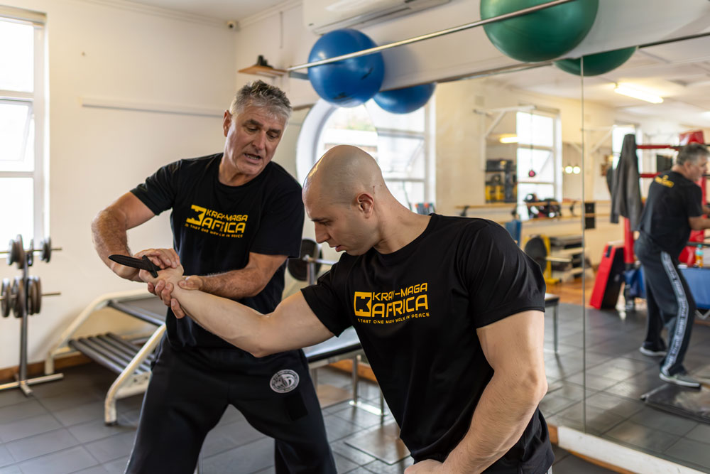 The training is held in consultation with you either in our studio on Regent Street in Sea Point or outdoors. We do this in order to be able to train or practice Krav Maga under realistic circumstances - i.e. poor lighting conditions and/or bad ground as well as weather conditions.